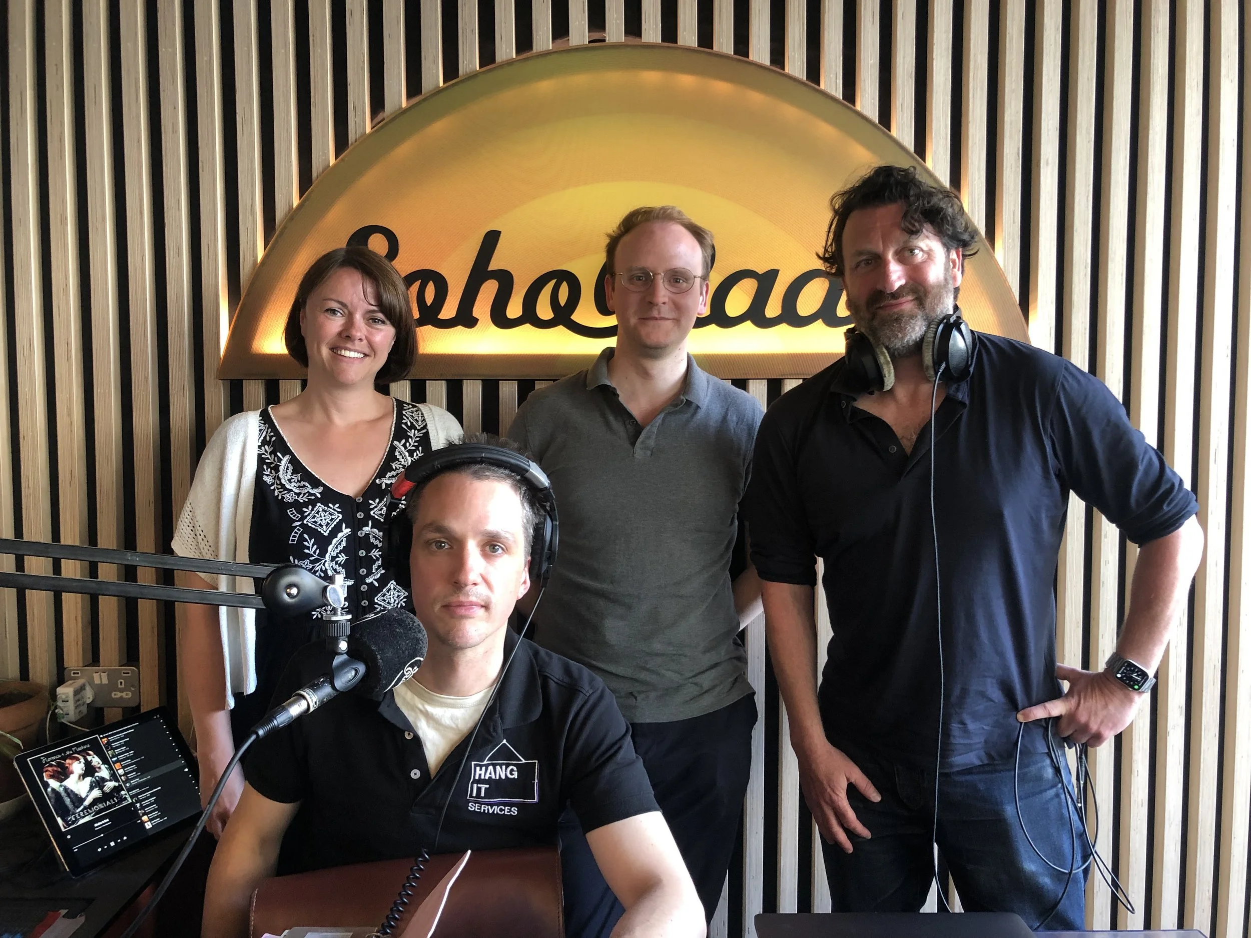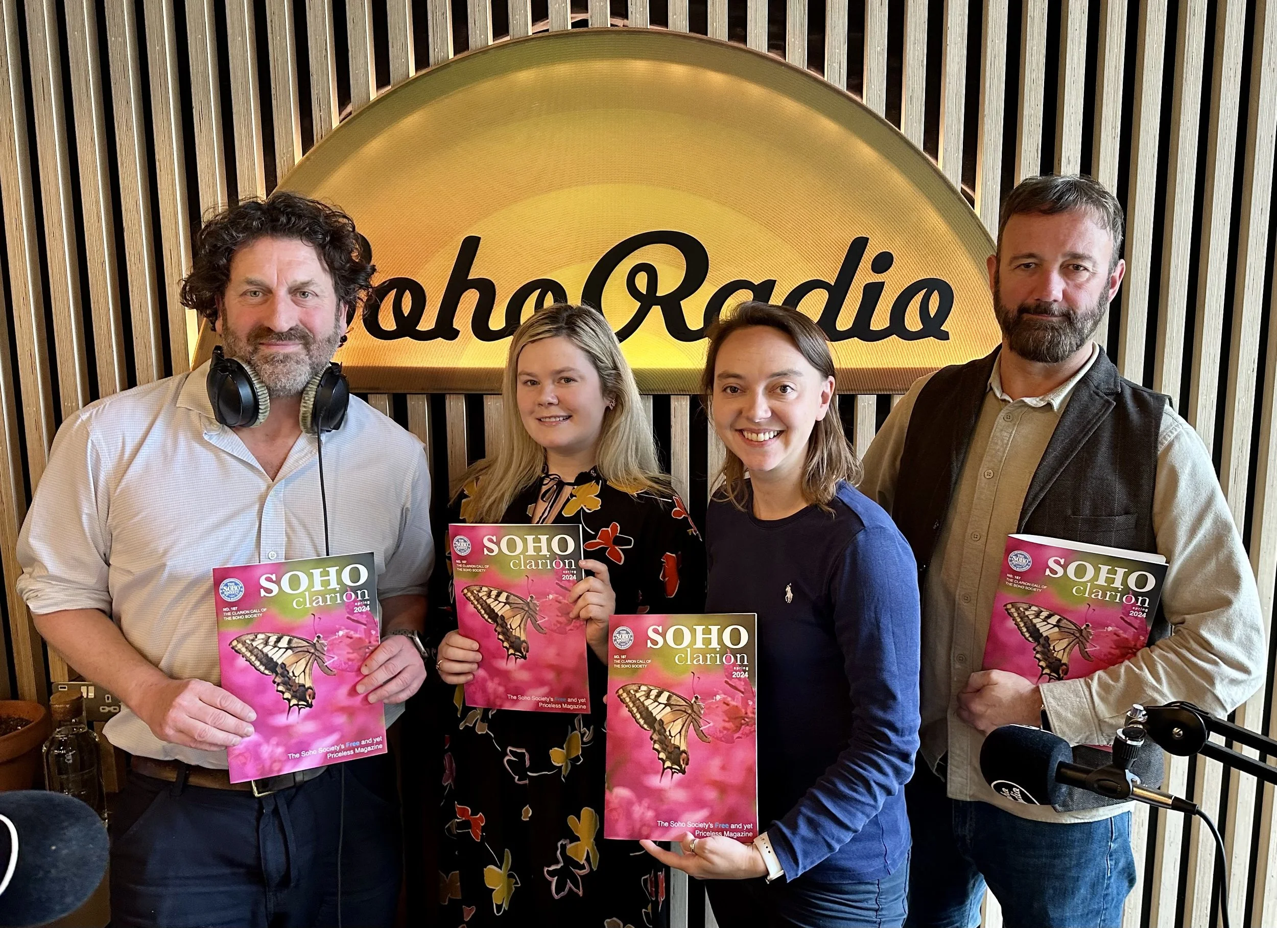 The Soho Society Hour on Soho Radio. Hosts include Jason Fisher-Jones, Tim Lord, David Gleeson, Lucy Haine, Jane Doyle, Simon Langley, and Helen Paynter along with Jim Cooke with the entertainment news.